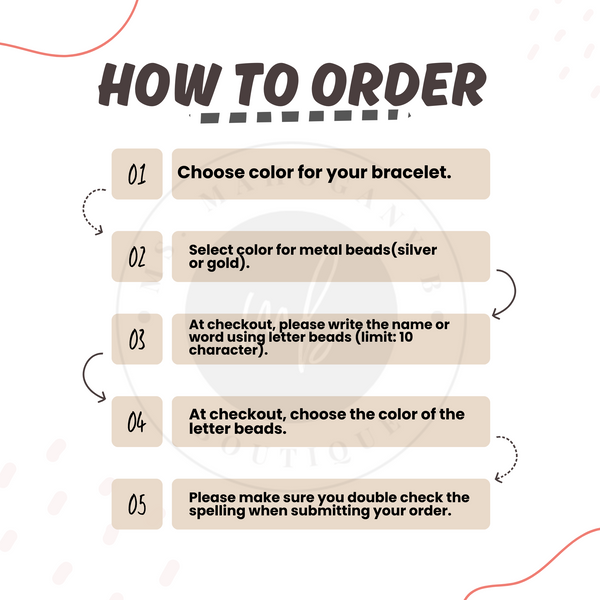 ✨Please leave bracelet color, bead color, bead finishing color in the “note section” at checkout.