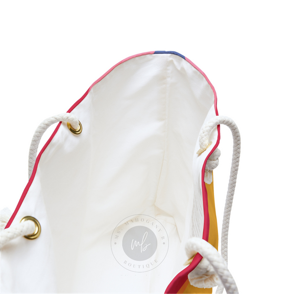 Our oversized Weekender Tote is perfect for your weekend at the beach or in town. The wide-mouthed, durable bag holds a generous amount of personal items and is easily held by its thick rope handles.